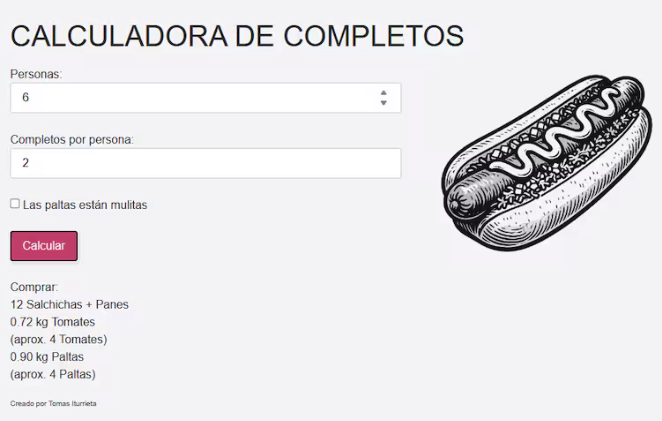 Calcular la porción: Se debe ingresar el promedio de completos que comerá cada persona.