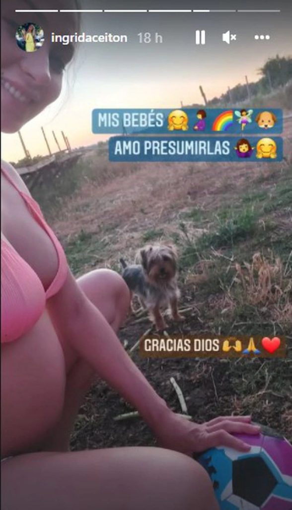 Y en las historias también se ha mostrado con su gran embarazo, “Mis bebés. Amo presumirlas. Gracias Dios“, escribió junto a esta última imagen.