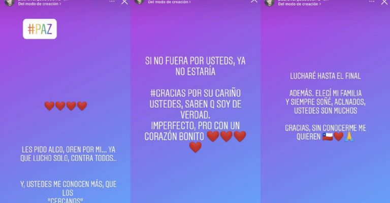 “Lucharé hasta el final. Además elegí a mi familia y siempre soñé, aclanados, ustedes son muchos. Gracias, sin conocerme me quieren”, fue uno de los últimos mensajes que subió como storie.